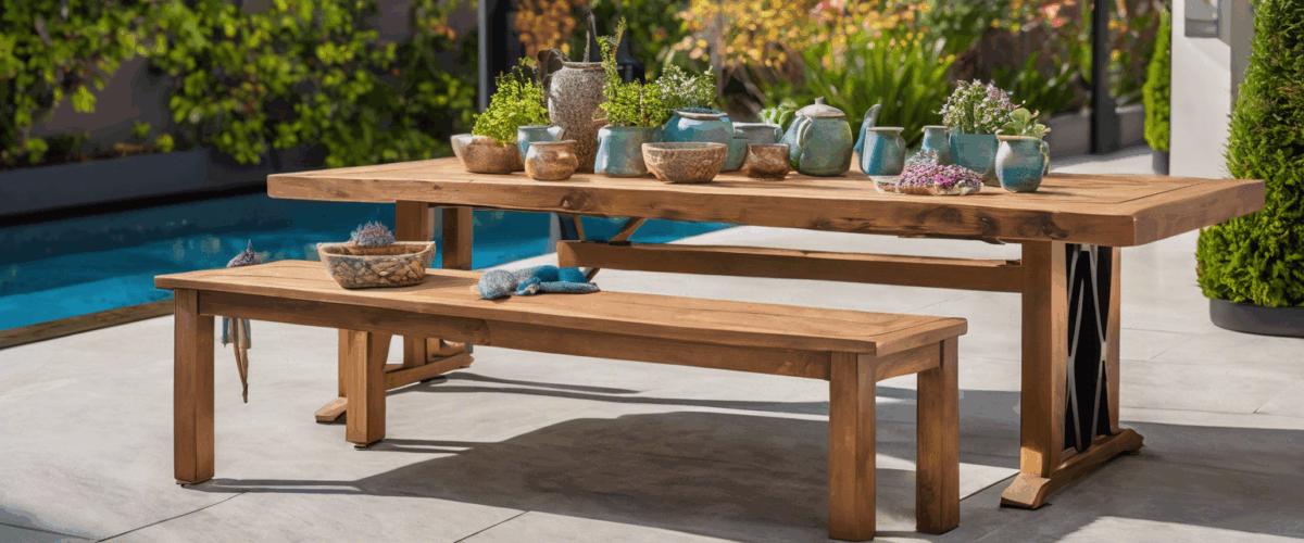 Nous appliquons des huiles spéciales Osmo sur bois pour prévenir fissures, une à deux fois par an en avril et octobre. Les résines reçoivent un traitement anti-UV annuel, tandis que le métal époxy se nettoie à l’eau savonneuse. Fréquences saisonnières évitent pourrissement : bâchez en hiver depuis novembre 2024.